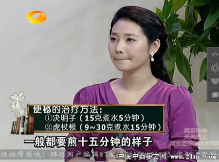 王琼介绍的食疗是在找到诊断的原因在治疗的基础上进行。便秘可以用决明子,决明子的泻不像其他如大黄和番茄叶的泻,会把营养带走,对身体不好,决明子是润肠的,决明子15克,如果不行可以试试二十克。最大剂量是30克,王琼建议名目用决明子可以泡茶不要煎。如果是用在治疗便秘上,一般要煎15分钟。