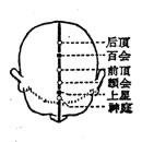 【标准定位】正坐位。在头部,当前发际正中直上2寸(百会前3寸)。